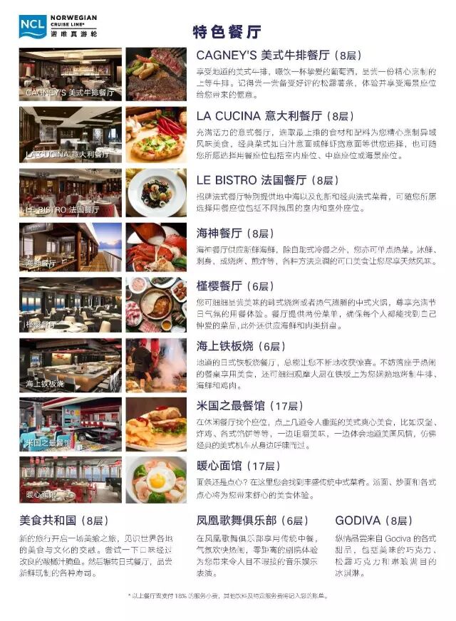 喜悅號擁有多達28種餐飲選擇專為國人定制,真的很接地氣。想想看,一天吃三家餐廳,輪番一遍也得要花個7天吶~