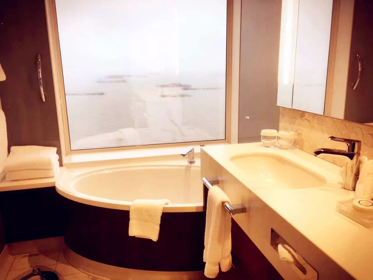 約2.5個小時的車程,貴賓團隊抵達上海吳淞口碼頭?!昂I项^等艙”就像一個巨型的移動式五星級酒店,出現(xiàn)在我們面前。